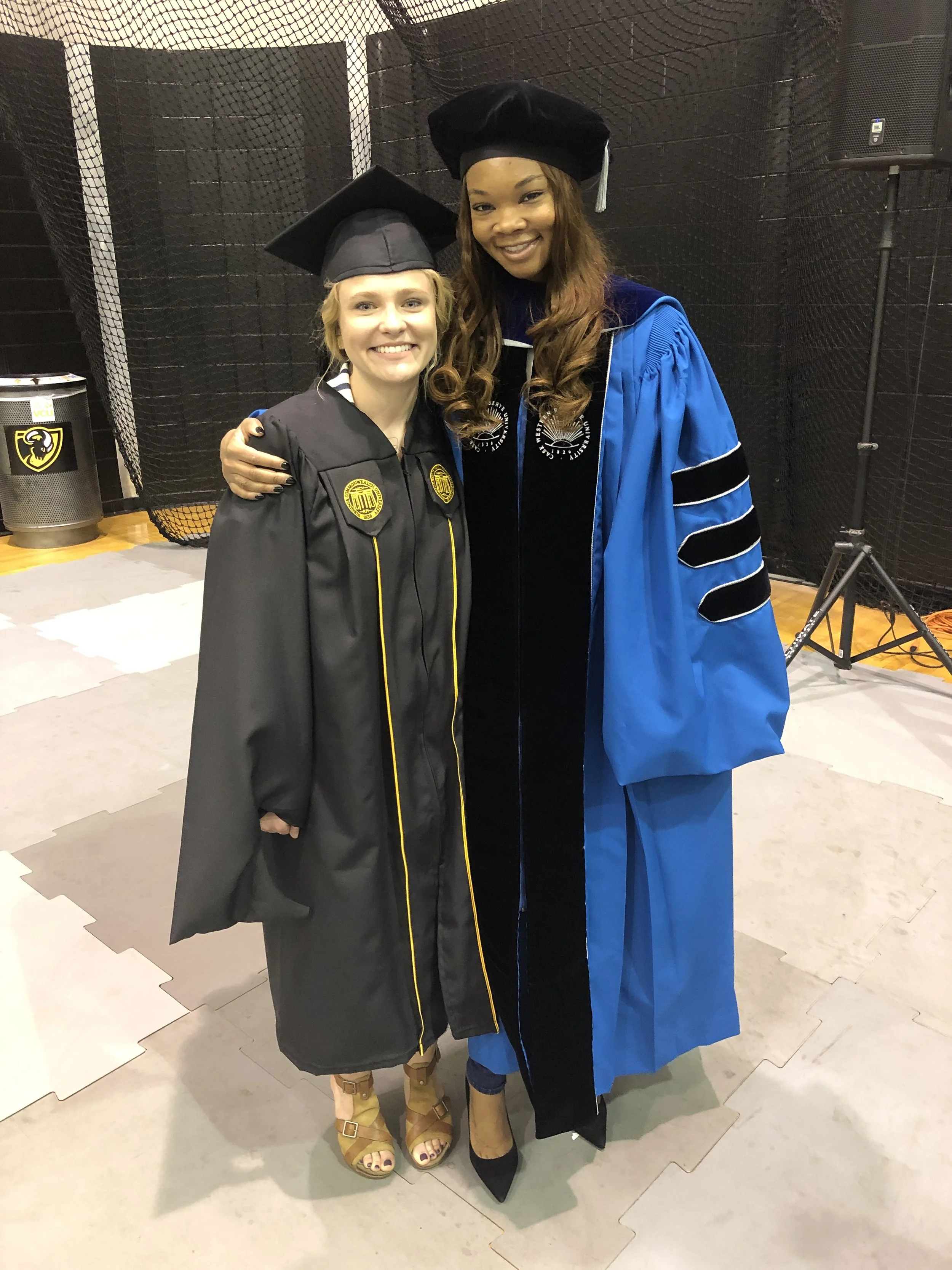 I worked as a research assistant for Dr. Jamie Cage in the Social Work Department at VCU. This is a picture of me with Dr. Cage at graduation.